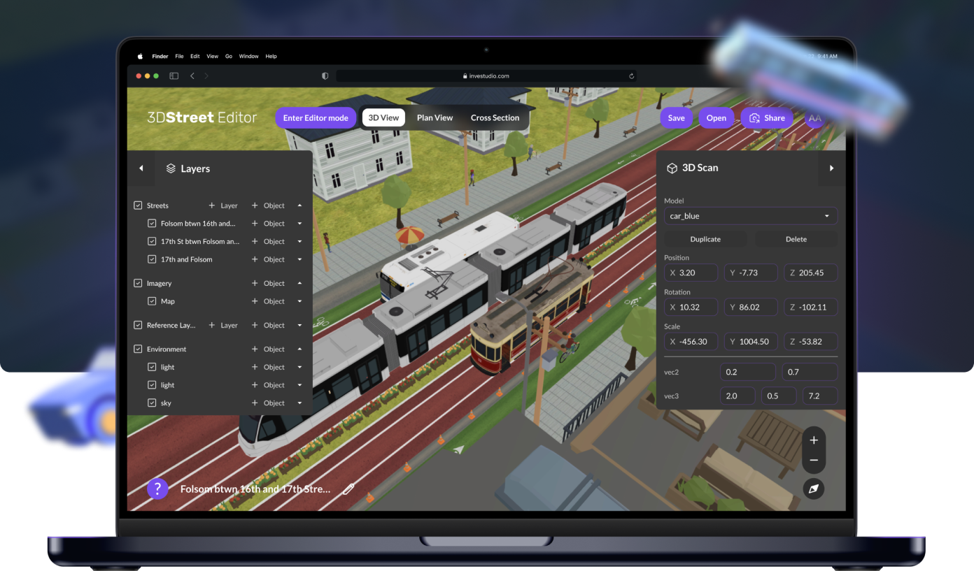 3DStreet is an open-source platform designed to make urban planning more accessible and collaborative. Their challenge was to create a platform that would seamlessly integrate with three.js and deliver an intuitive, easy-to-use experience for users to design and modify 3D street layouts quickly and effectively.